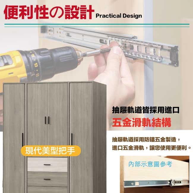 【綠家居】琳諾5.7尺四門三抽衣櫃組合