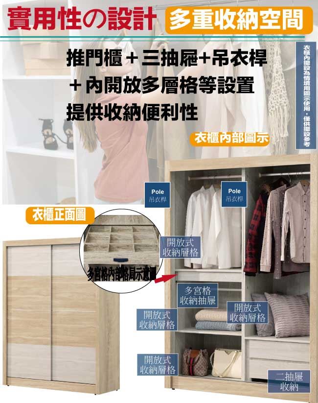 商 品 介 紹 | 【綠家居】葛特雙色5尺推門衣櫃 木紋雙色系+現代簡約風格+安心材質製造,使用放心+搭配居家更便利,整體採用防蛀木心板+防潮耐磨腳座+五金滑軌結構等材質搭配外層採用優莉坦耐磨全包式噴漆處理 ,採用推門櫃+吊衣桿+三抽屜(含多宮格收納抽屜)+內開放層格等收納空間設計,全由專人配送到家,專業安心服務,替你省下更多時間! 【商品特色】 木紋雙色系+現代簡約風格+安心材質製造,使用放心+搭配居家更便利 防蛀木心板+防潮耐磨腳座+五金滑軌結構等材質 採用推門櫃+吊衣桿+三抽屜(含多宮格收納抽屜)+內開放層格等收納空間設計 此商品不需要DIY組立,此商品為組立後之成品 品質保證、專業設計、貼心服務 全由專人配送到家,專業安心服務,替您省下更多時間 |