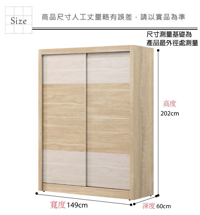 材質 | ◆產品名稱:【綠家居】葛特雙色5尺推門衣櫃 尺寸:(寬)149x(深)60(高)202公分 ◆材質: 材質:防蛀木心板+防潮耐磨腳座+五金滑軌結構 噴漆:防潮耐磨噴漆處理