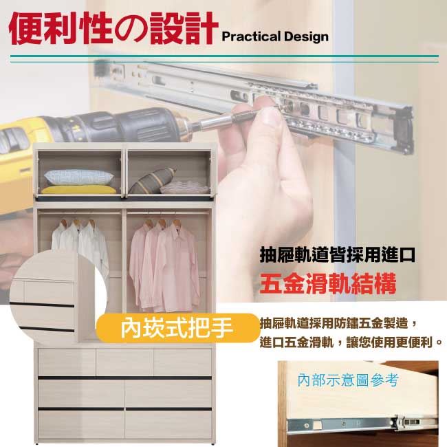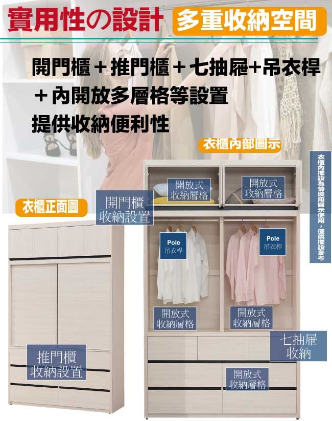 【綠家居】亞卡5.1尺開&推門七抽加高衣櫃組合