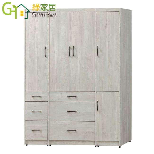 【綠家居】卡希5.3尺五門六抽衣櫃組合(含穿衣鏡面)