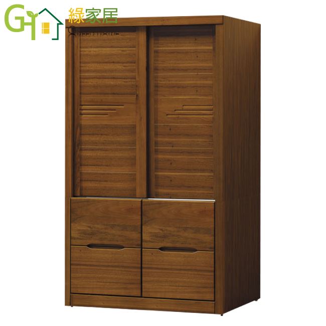【綠家居】凱欣柚木紋5尺實木推門四抽衣櫃