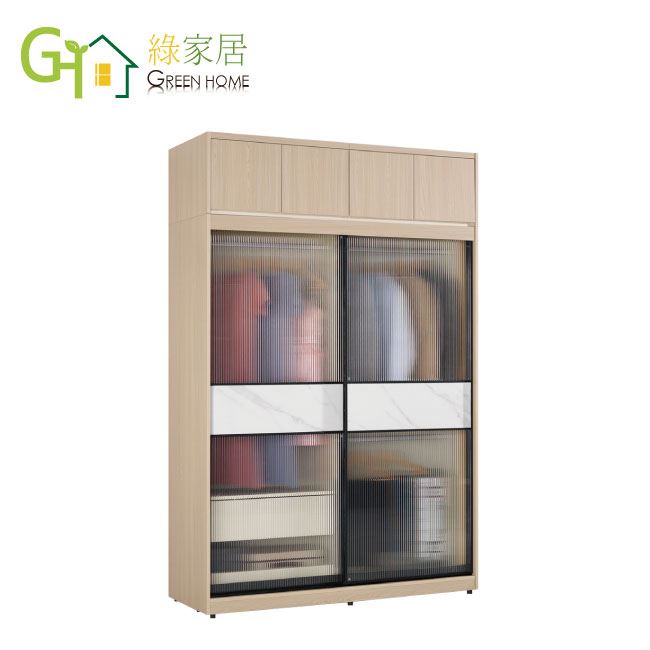 【綠家居】維爾加高5尺鋁框玻璃岩板衣櫃組合(吊衣桿x3+單抽屜)