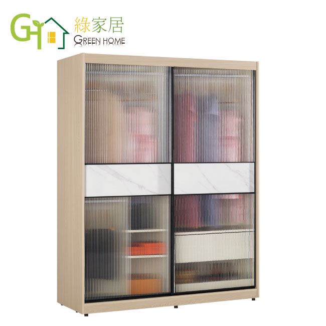 【綠家居】維爾鋁框5尺岩板玻璃衣櫃(吊衣桿x3+單抽屜)