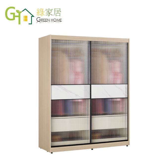 【綠家居】維爾5尺鋁框玻璃岩板衣櫃(吊衣桿x2+二抽屜)