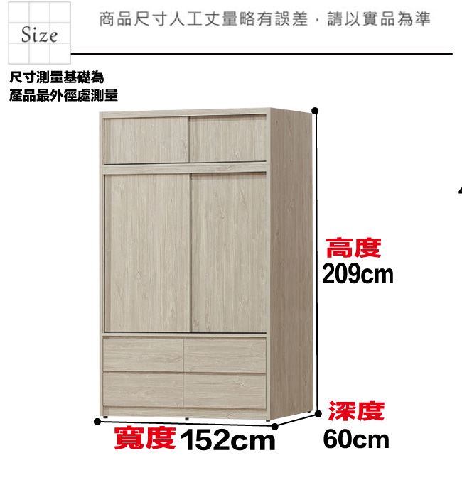 材質 | ◆產品名稱:【綠家居】迪爾5.1尺推門四抽衣櫃 尺寸:(寬)152x(深)60x(高)209/公分 ◆材質: 材質:防蛀木心板+防潮耐磨底座+五金滑軌結構 噴漆:防潮耐磨噴漆處理 |