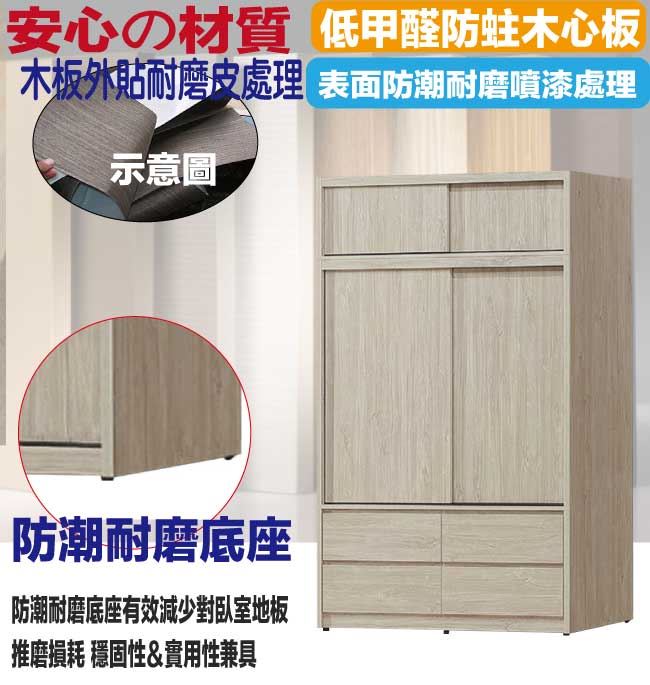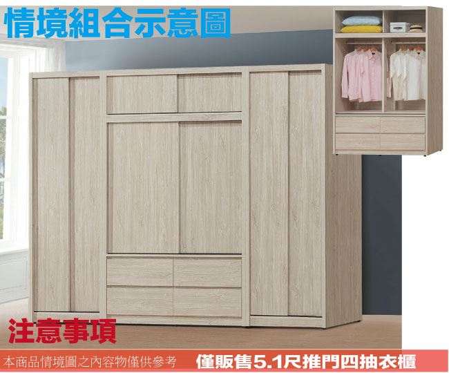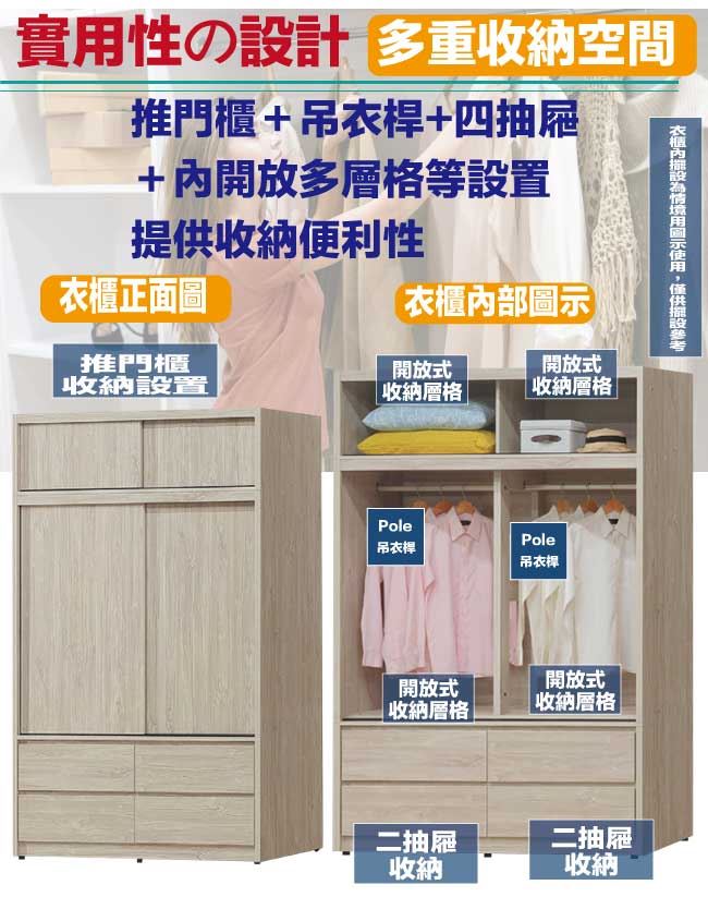 【綠家居】迪爾5.1尺推門四抽衣櫃