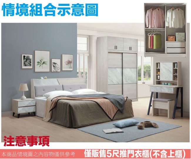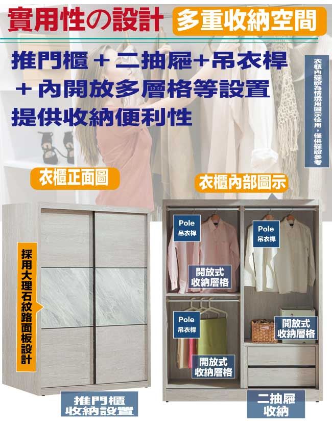 【綠家居】蘿珊雙色5尺推門內二抽衣櫃