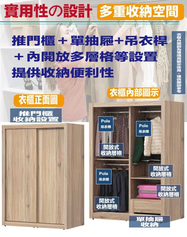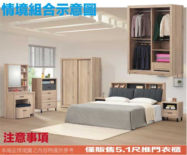 【綠家居】克蘿5.1尺推門內單抽衣櫃
