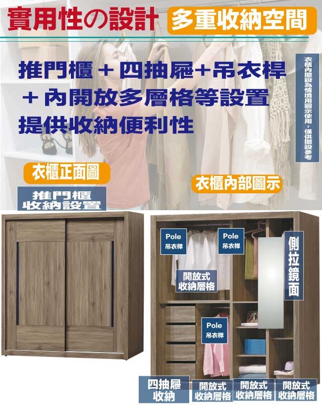 【綠家居】派克爾5.9尺推門內鏡面四抽衣櫃