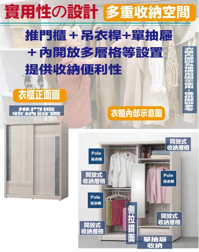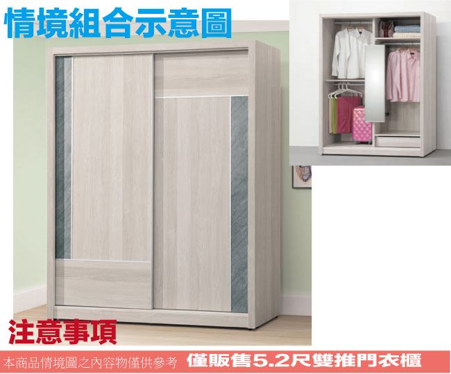 【綠家居】麥法亞雙色5.2尺推門衣櫃(附設側拉穿衣鏡面)