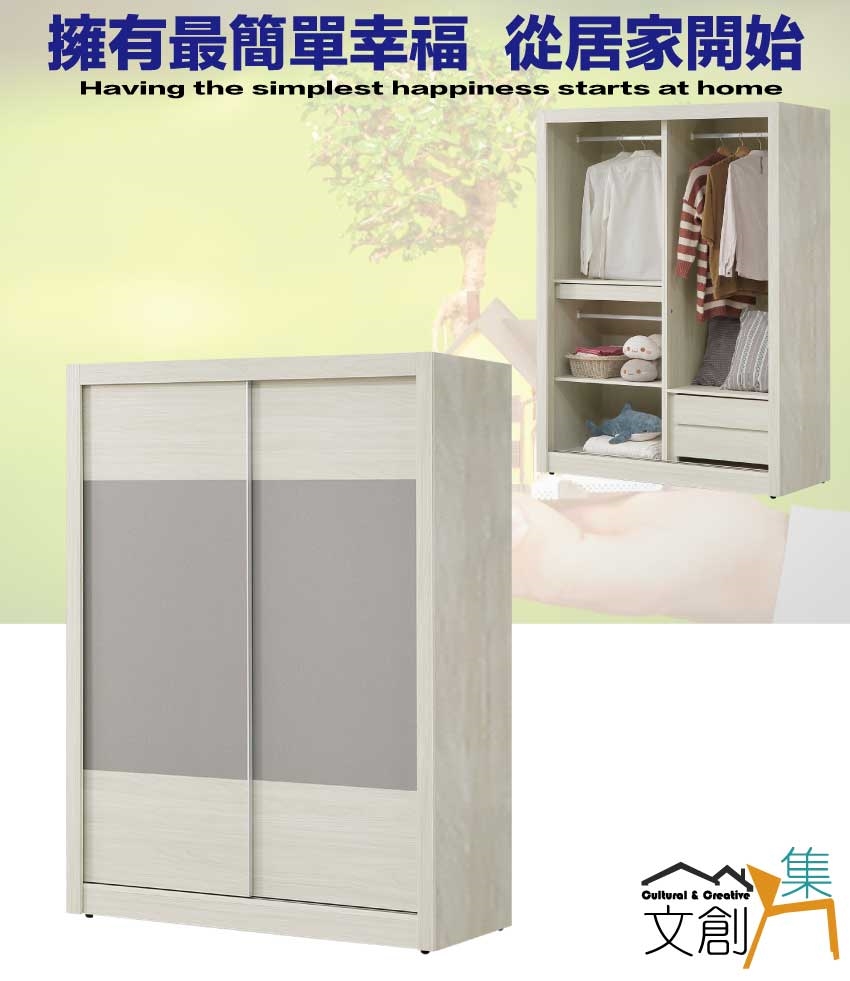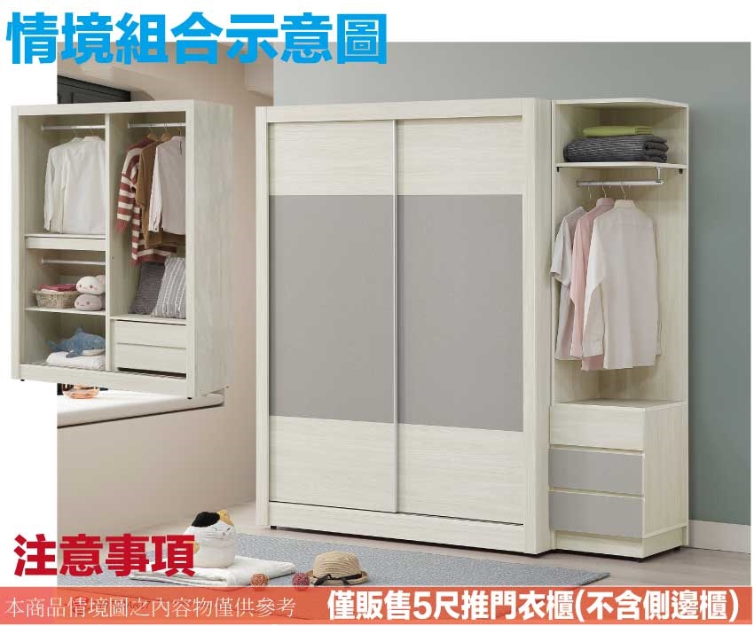 【綠家居】希望5尺雙色推門衣櫃