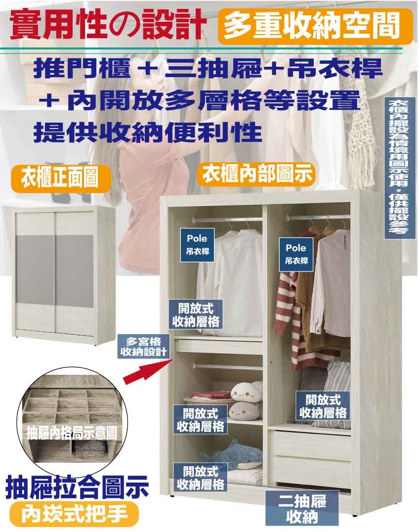 推門櫃+吊衣桿+三抽屜