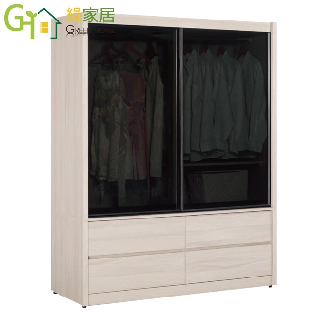 【綠家居】朵利5.1尺鋁製推門黑玻四抽衣櫃