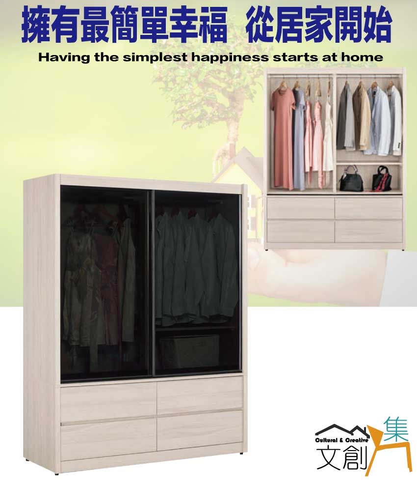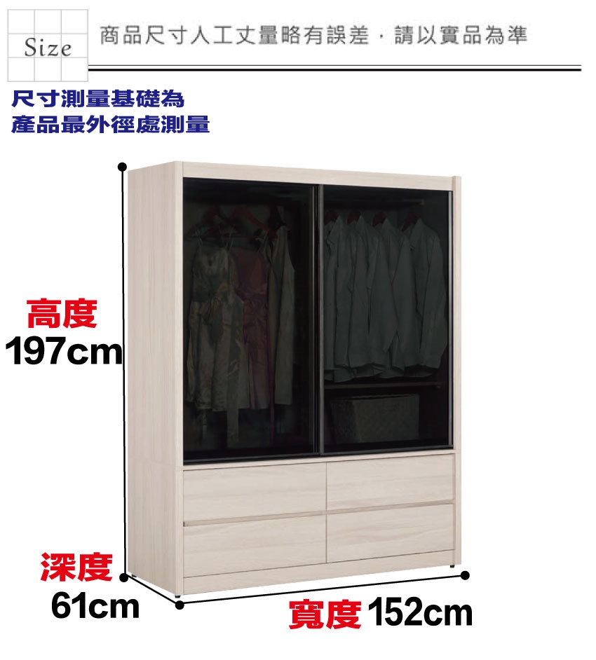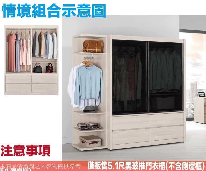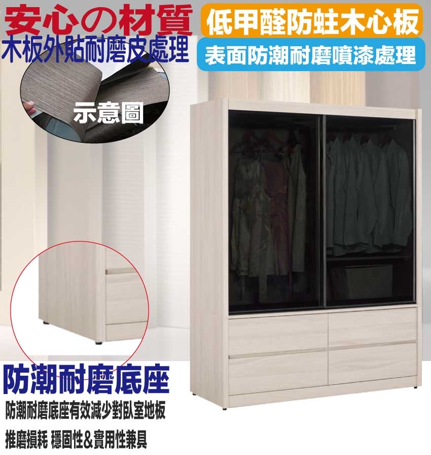 - ◆產品名稱:【綠家居】朵利5.1尺鋁製推門黑玻四抽衣櫃