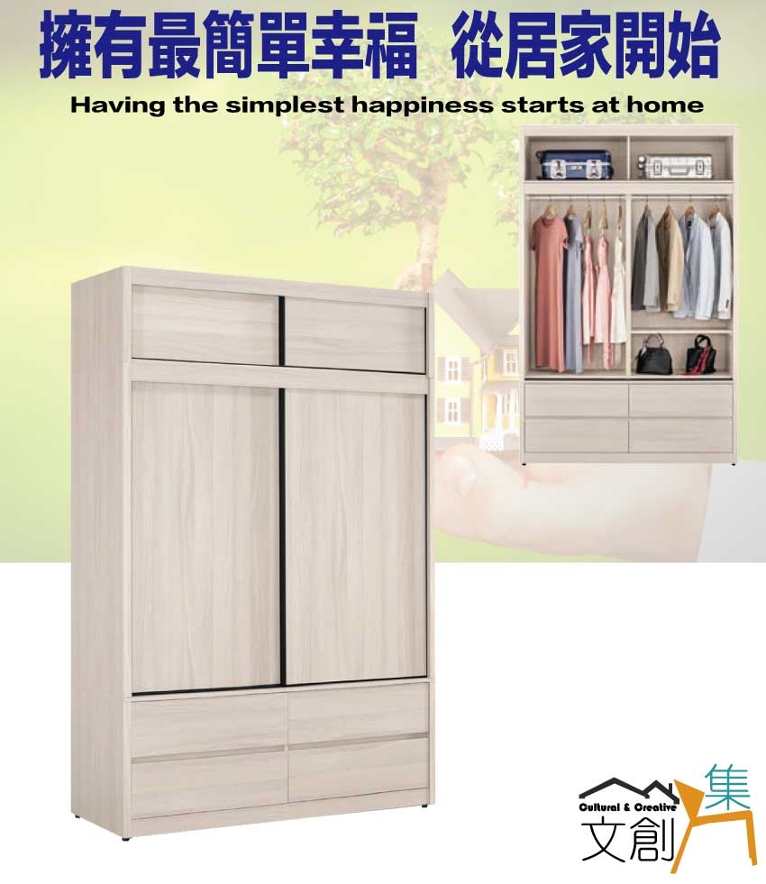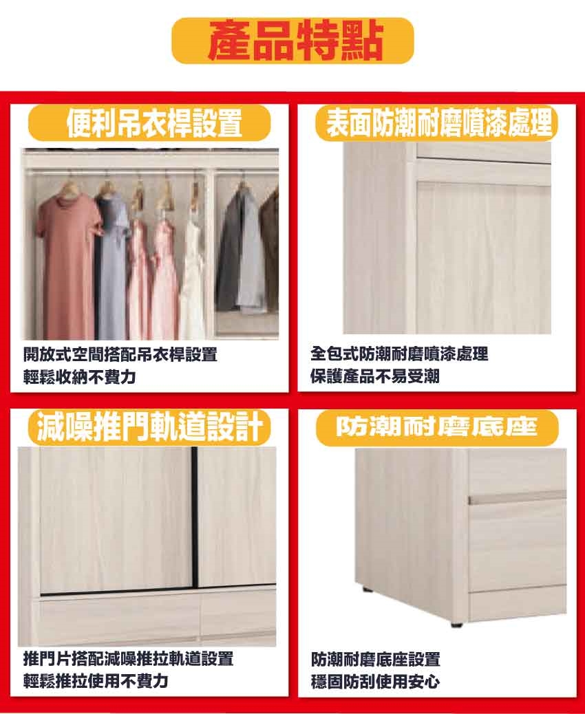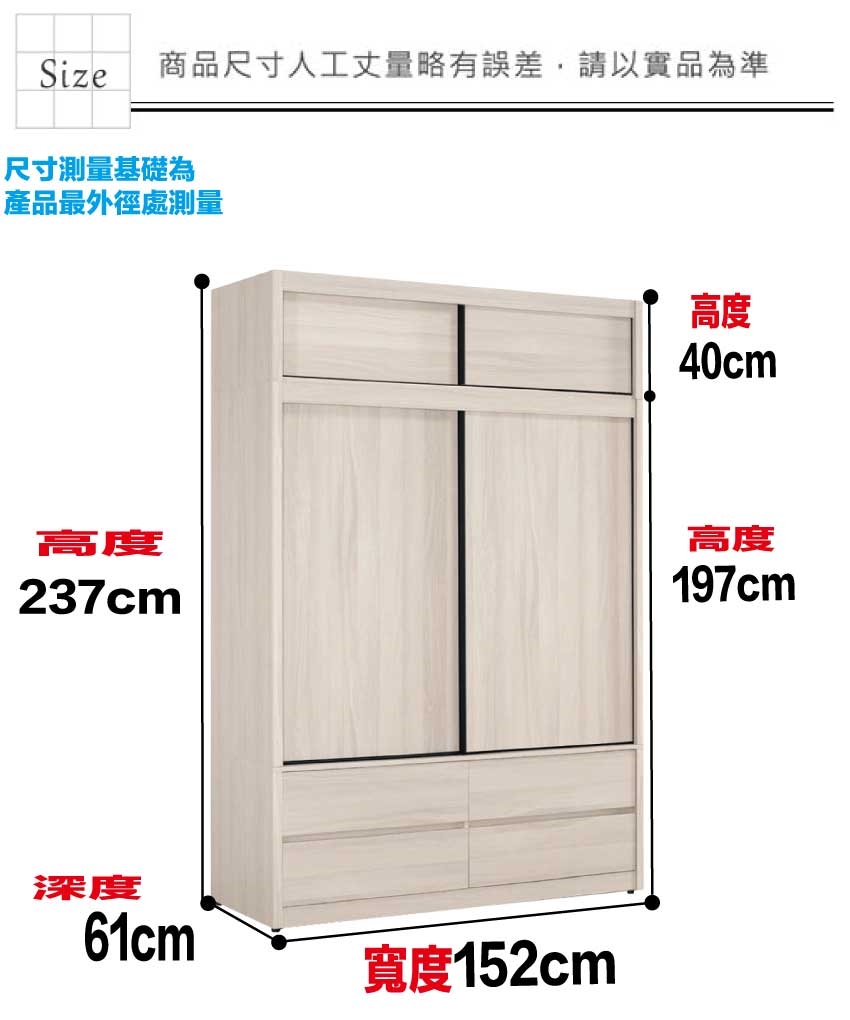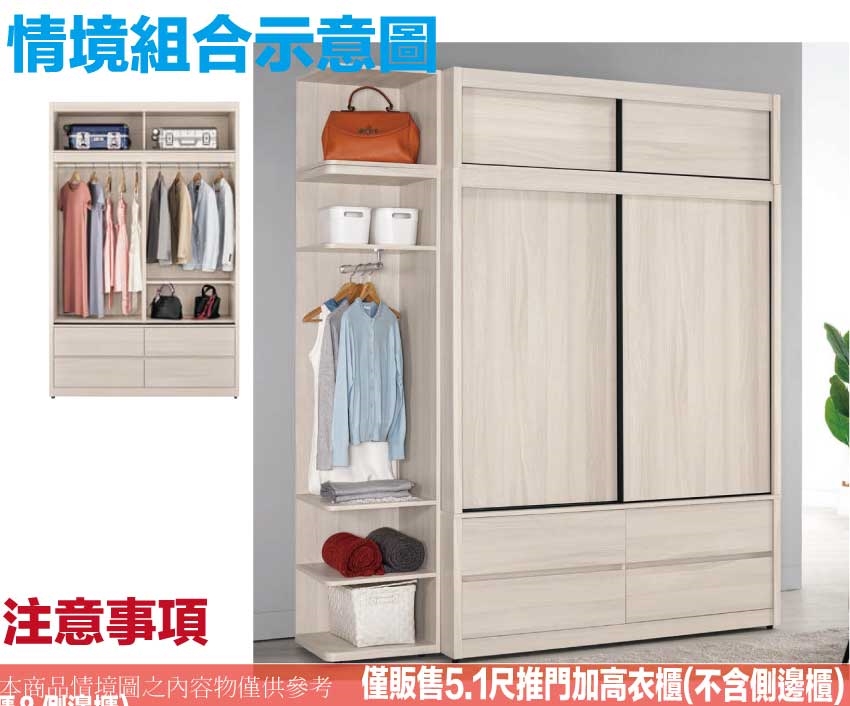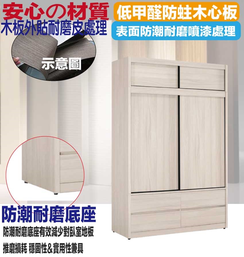 - ◆產品名稱:【綠家居】朵利5.1尺推門四抽加高衣櫃