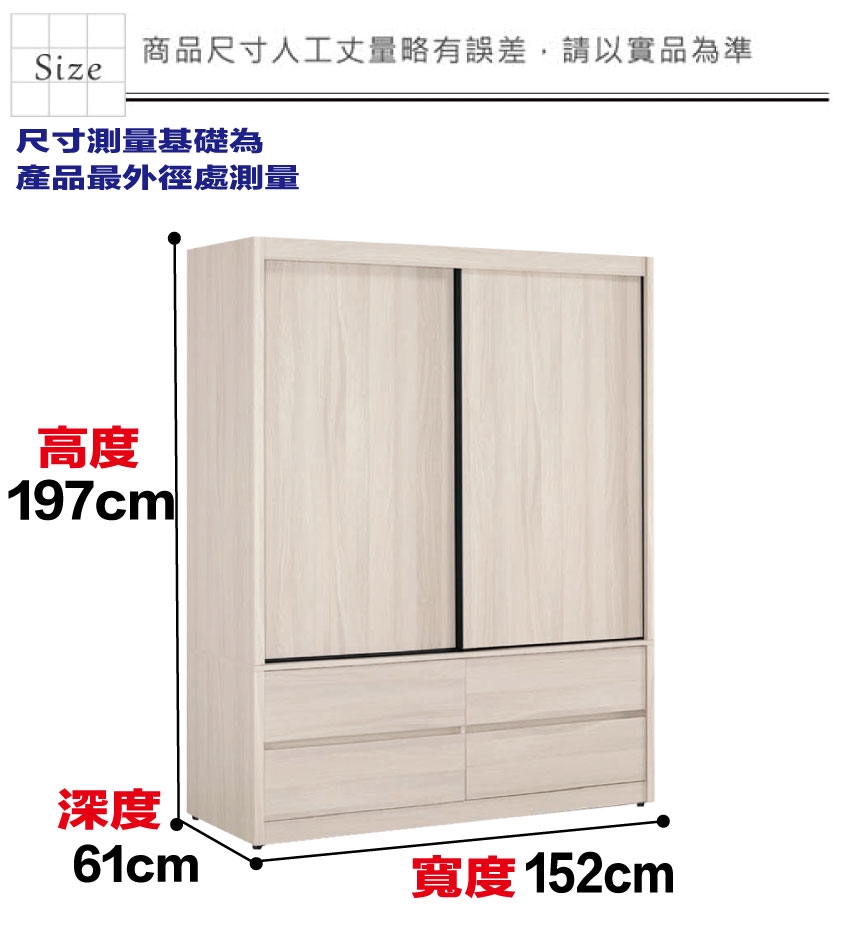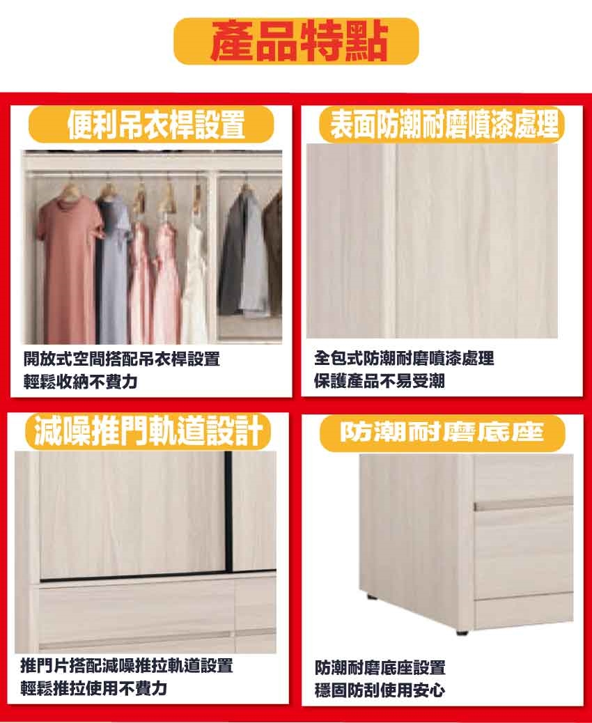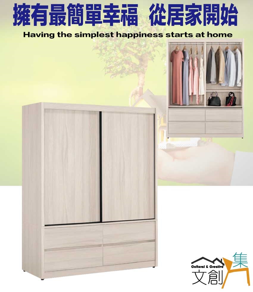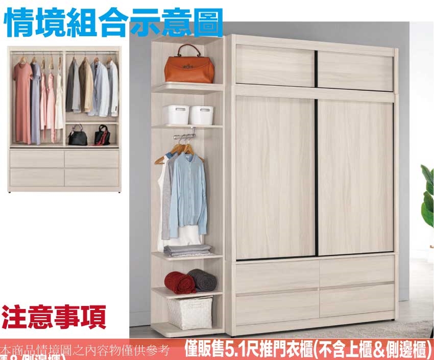 - ◆產品名稱:【綠家居】朵利5.1尺推門四抽衣櫃