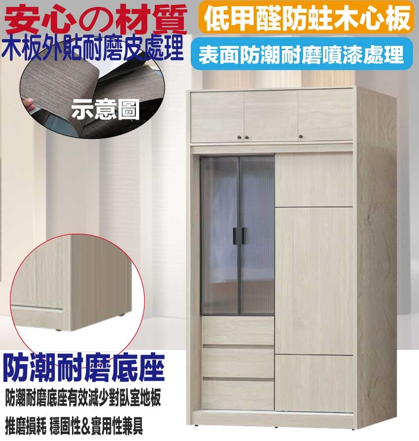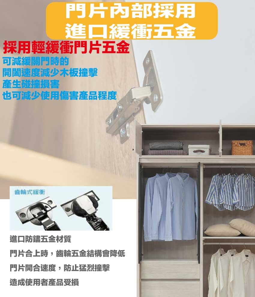 開門櫃&推門櫃+吊衣桿+三抽屜