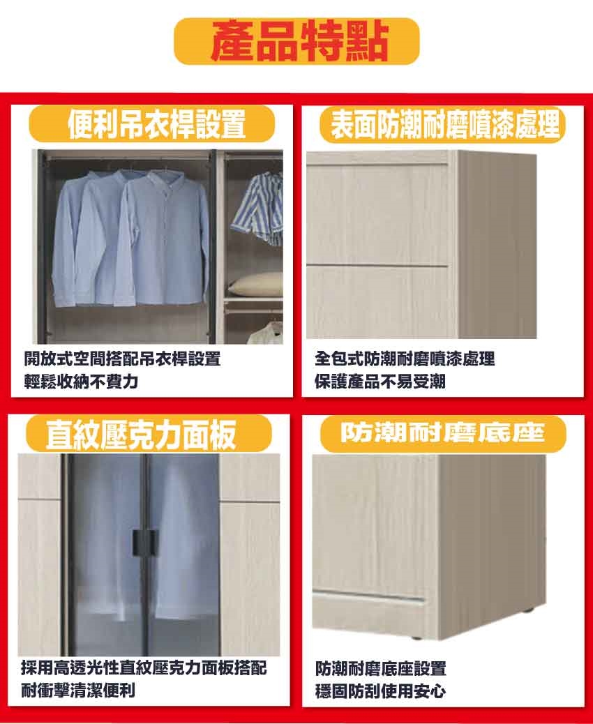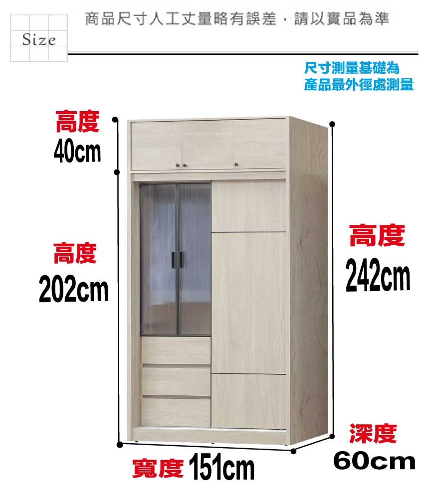 - ◆產品名稱:【綠家居】夏斯5尺開&推門加高衣櫃組合
