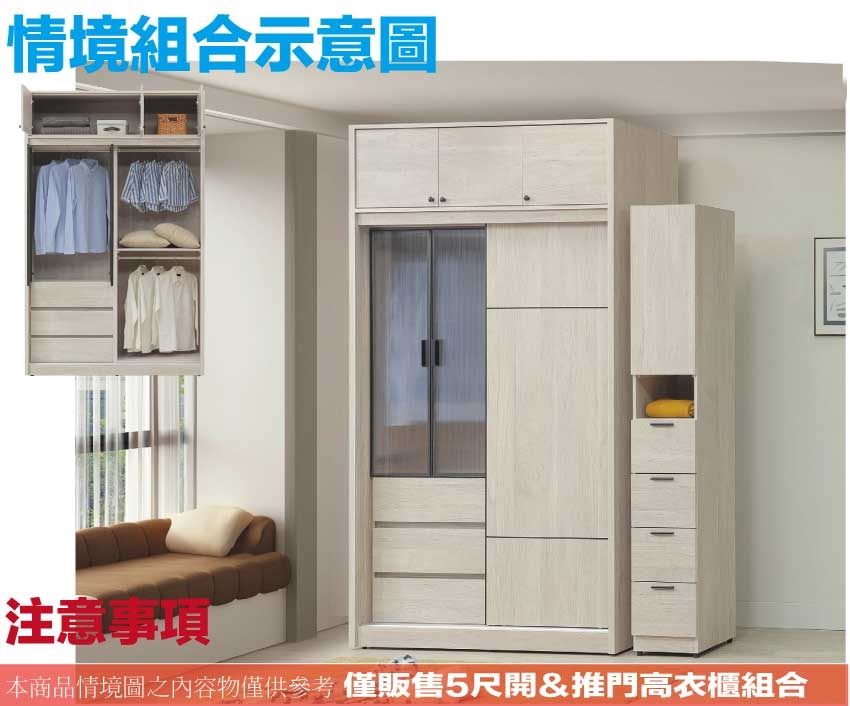 【綠家居】夏斯5尺開&推門加高衣櫃組合