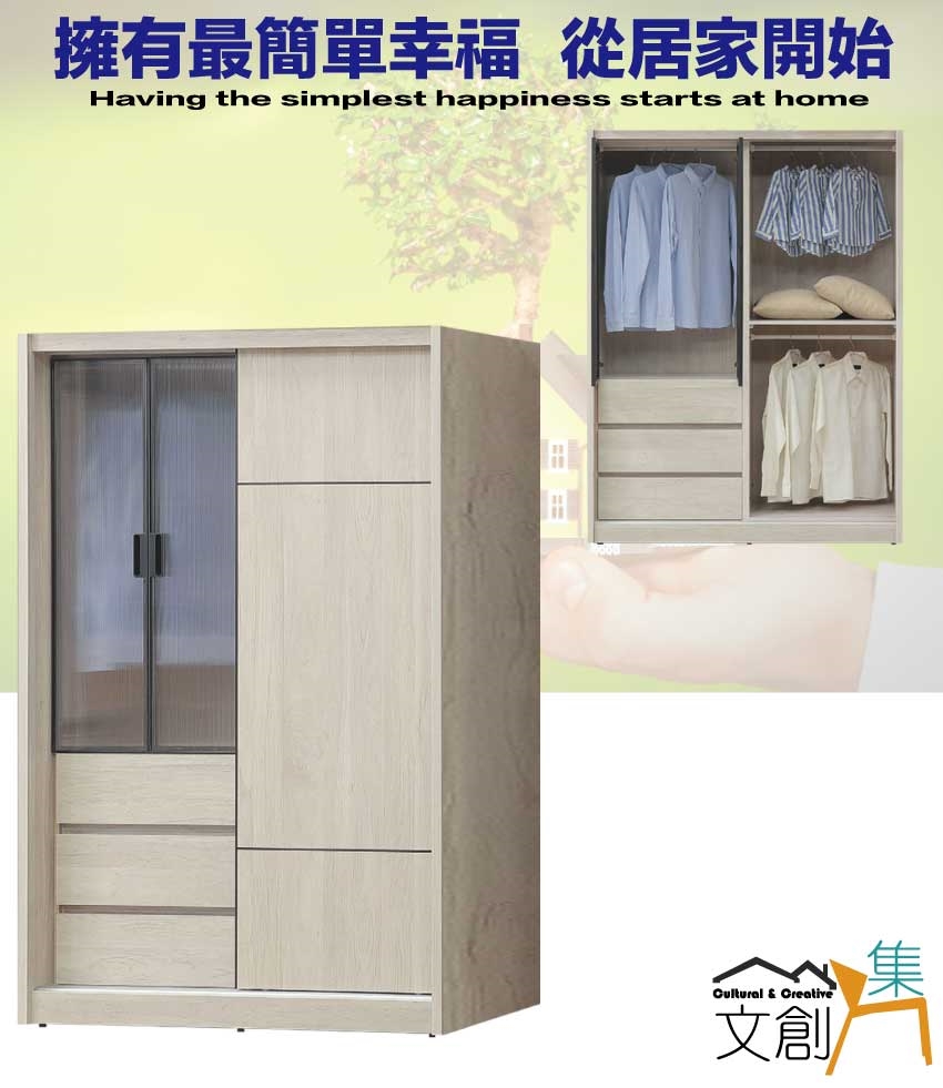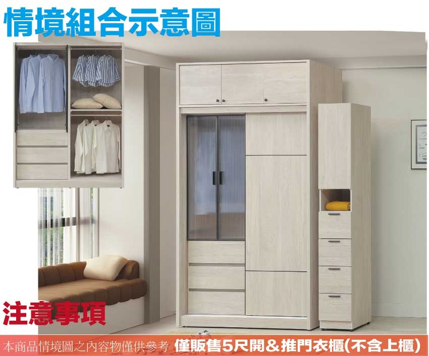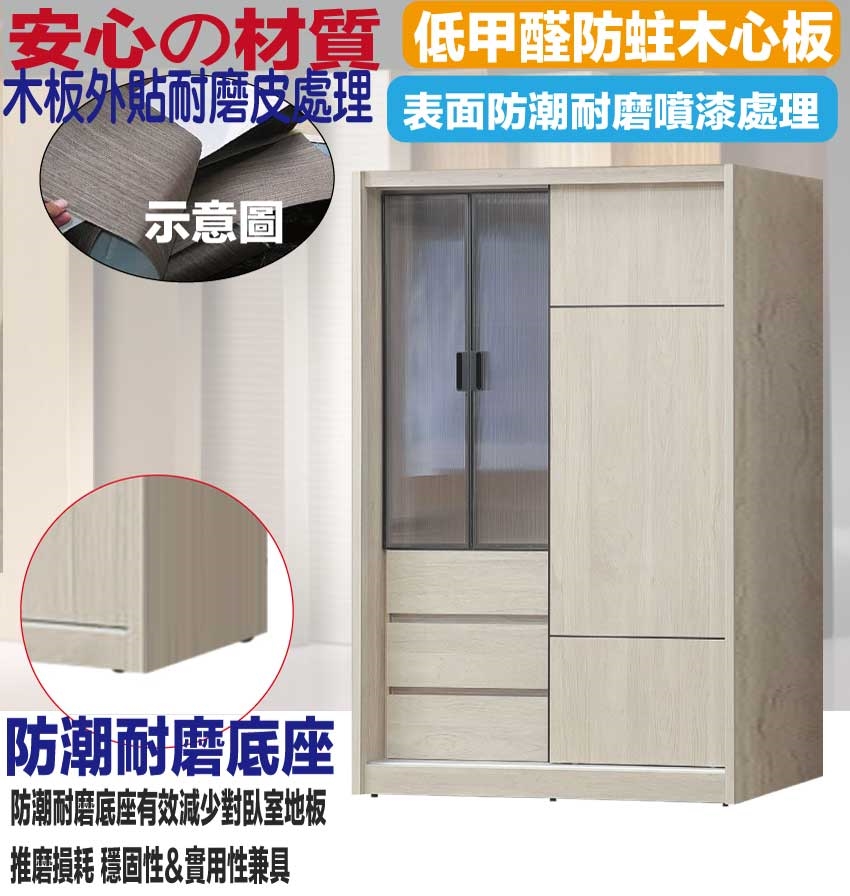 【綠家居】夏斯5尺開&推門三抽衣櫃