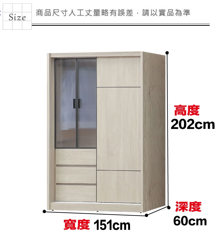 - ◆產品名稱:【綠家居】夏斯5尺開&推門三抽衣櫃