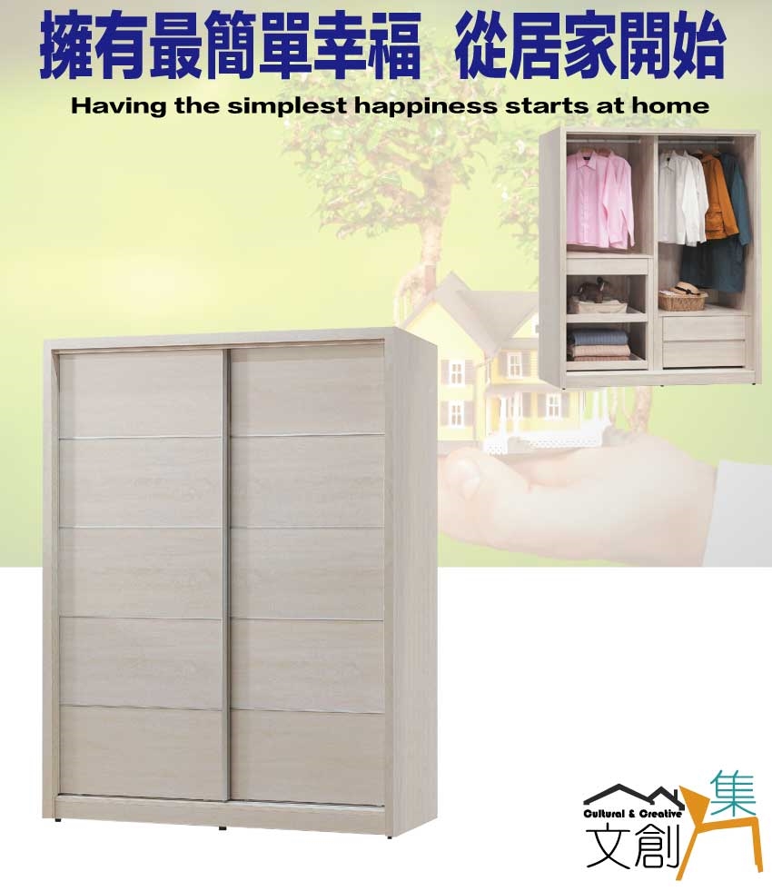 【綠家居】夏沐5.2尺推門衣櫃