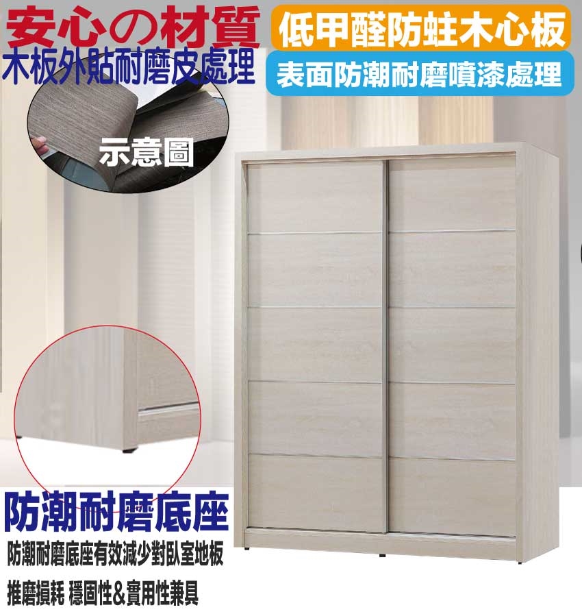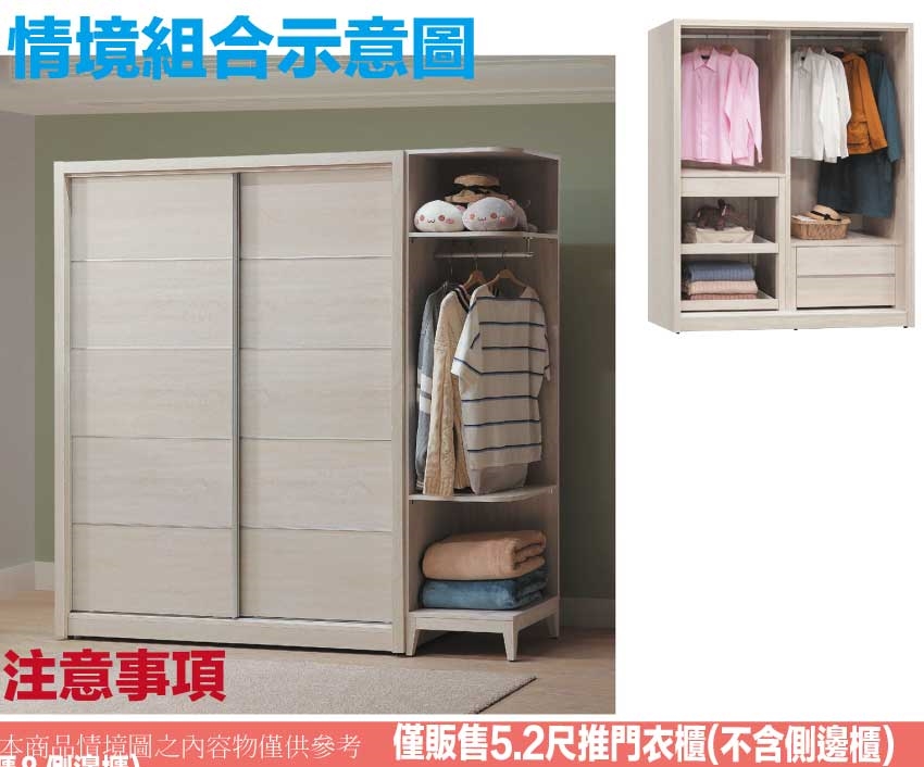 ★偏遠地區需額外加收運費,下標請先問與答詢問★ ★下訂前注意 由於商品流動較快,下訂前請先詢問是否有貨在下訂喔~★ 【綠家居】夏沐5.2尺推門衣櫃 淺橡木紋色系+安心材質製造,使用放心+搭配居家更便利,採用防蛀木心板+防潮耐磨底座+五金滑軌結構等安心材質製造 ,外層採用防潮耐磨噴漆處理搭配採用推門櫃+吊衣桿+二抽屜+多宮格收納抽+內開放層格等收納空間設計,全由專人配送到家,專業安心服務,替你省下更多時間!