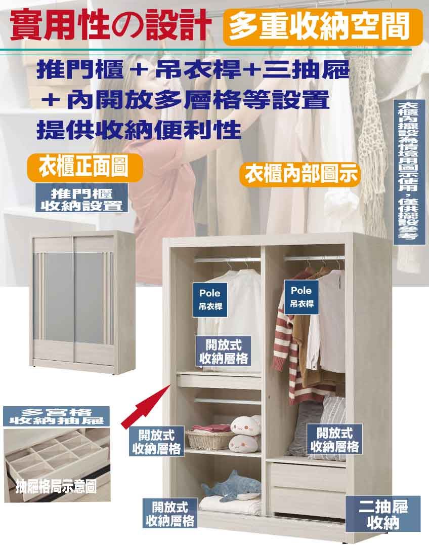 - ◆產品名稱:【綠家居】奇伊5尺推門衣櫃