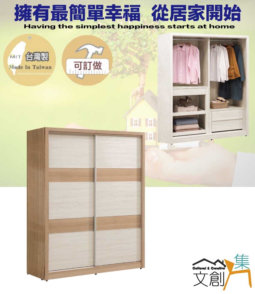 【綠家居】賓利5.2尺雙色推門衣櫃