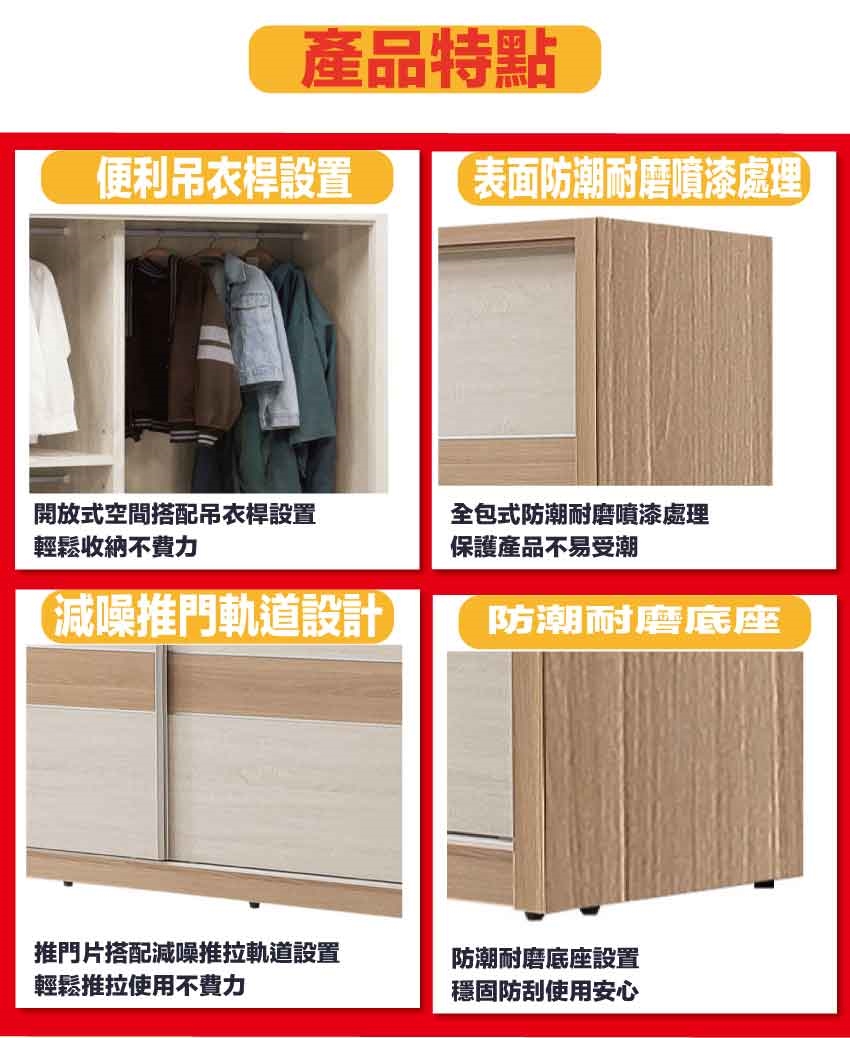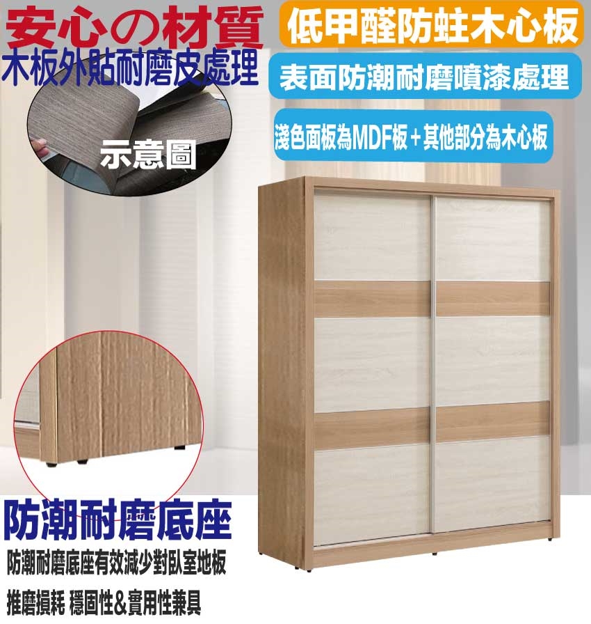 ★偏遠地區需額外加收運費,下標請先問與答詢問★ ★下訂前注意 由於商品流動較快,下訂前請先詢問是否有貨在下訂喔~★ 【綠家居】賓利5.2尺雙色推門衣櫃 木紋雙色系+安心材質製造,使用放心+搭配居家更便利,採用防蛀木心板+防潮MDF板+防潮耐磨底座+五金滑軌結構等安心材質製造 ,外層採用防潮耐磨噴漆處理搭配採用推門櫃+吊衣桿+三抽屜(含多宮格收納抽)+內開放多層格等收納空間設計,全由專人配送到家,專業安心服務,替你省下更多時間!