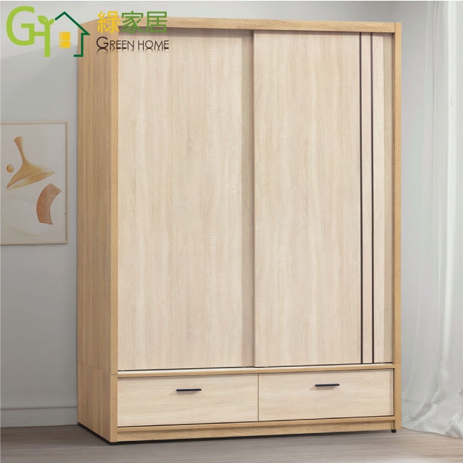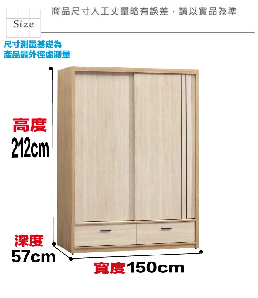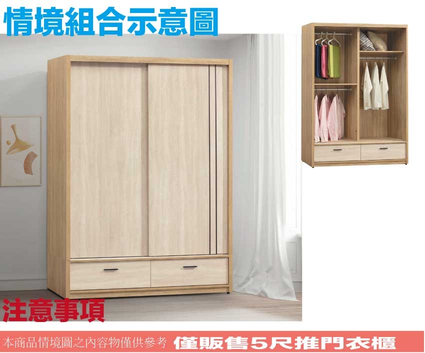 - ◆產品名稱:【綠家居】羅比斯5尺推門二抽衣櫃