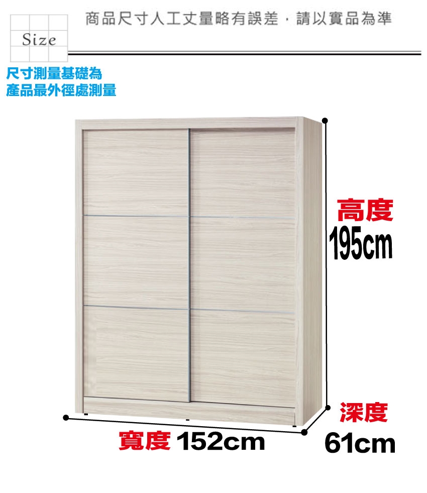 - ◆產品名稱:【綠家居】包格斯5.1尺推門衣櫃(內含穿衣鏡面)