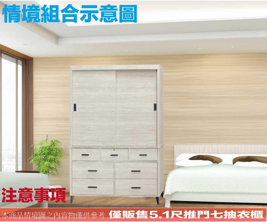 【綠家居】賽斯5.1尺推門七抽衣櫃(二色可選)