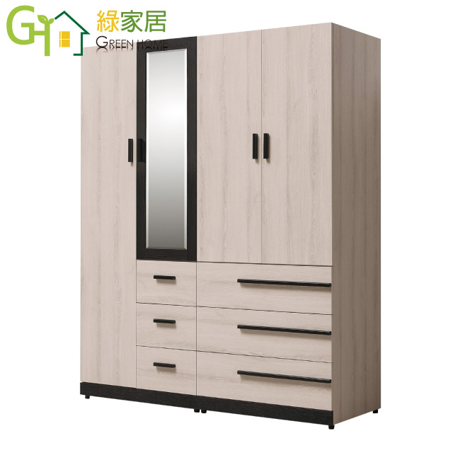 【綠家居】艾咪 時尚5.3尺鏡面六抽衣櫃/收納櫃組合(吊衣桿+六抽屜+穿衣鏡)