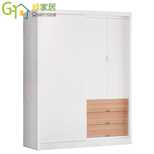 【綠家居】桑斯 時尚5尺木紋雙色衣櫃(三吊桿+三抽屜+開放層格)