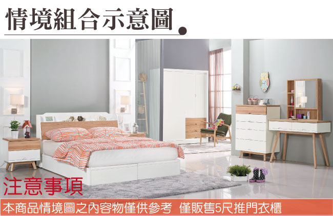 ◆產品名稱:【綠家居】桑斯 時尚5尺木紋雙色衣櫃(三吊桿+三抽屜+開放層格)