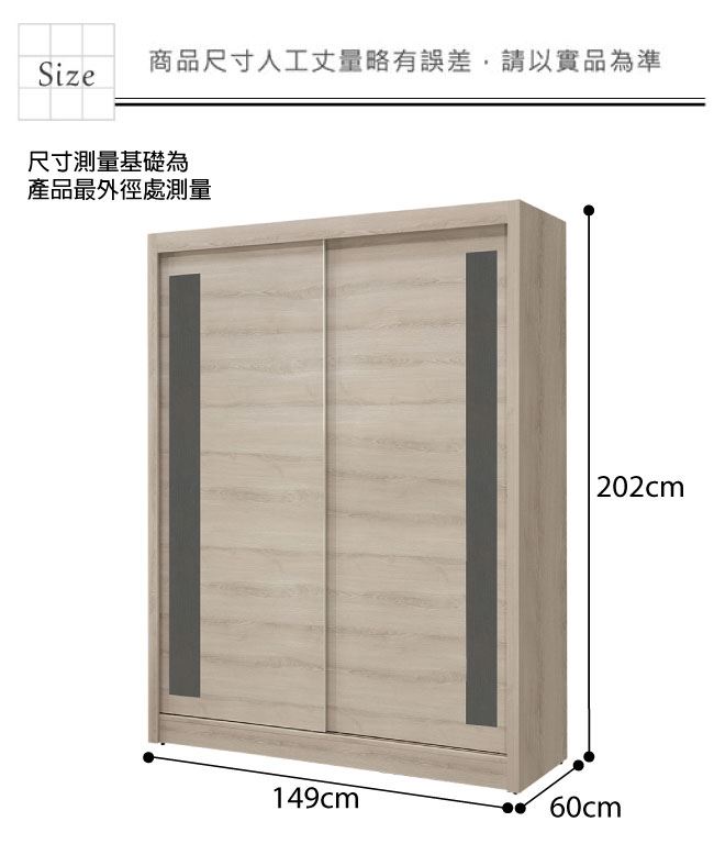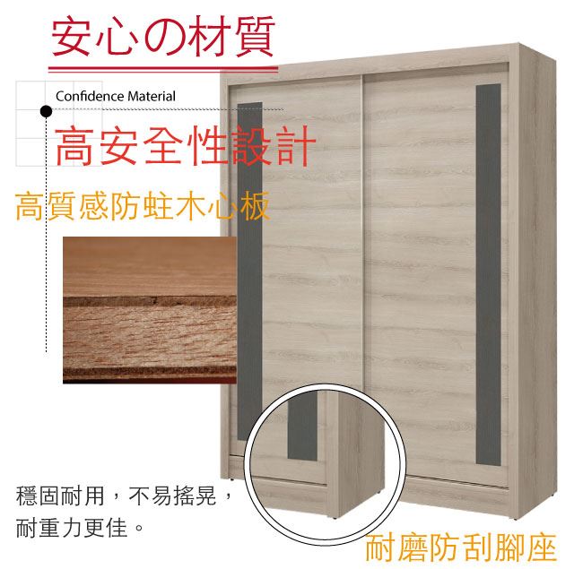 材質 | ◆產品名稱:【綠家居】 額爾 現代5尺推門衣櫃/收納櫃 產品尺寸: 收納櫃尺寸:(寬)149x(深)60x(高)202/公分 ◆材質: 材質:防蛀木心板+防刮耐磨腳座 材質:五金滑軌結構 塗漆:優利坦全包式耐磨噴漆處理 |