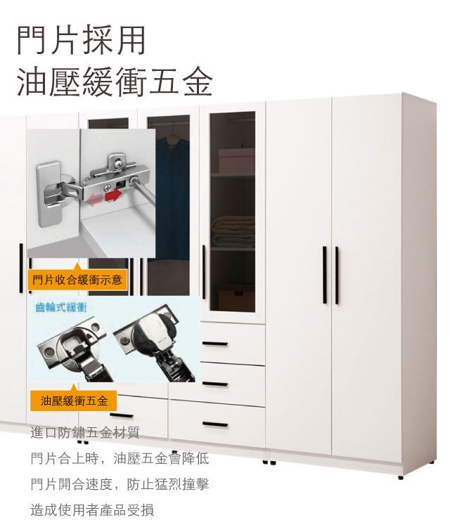 - 防夾手緩衝五金+ 現代白色系
