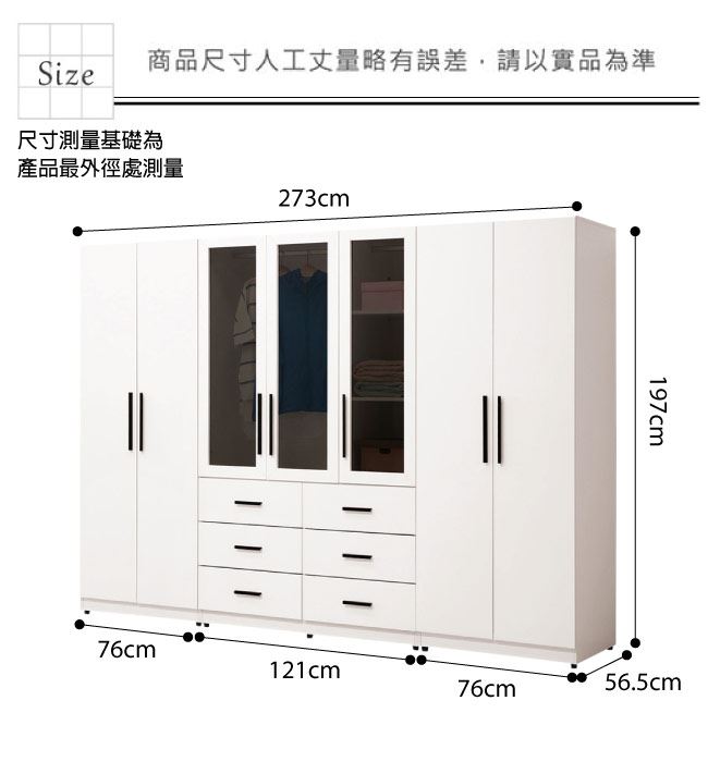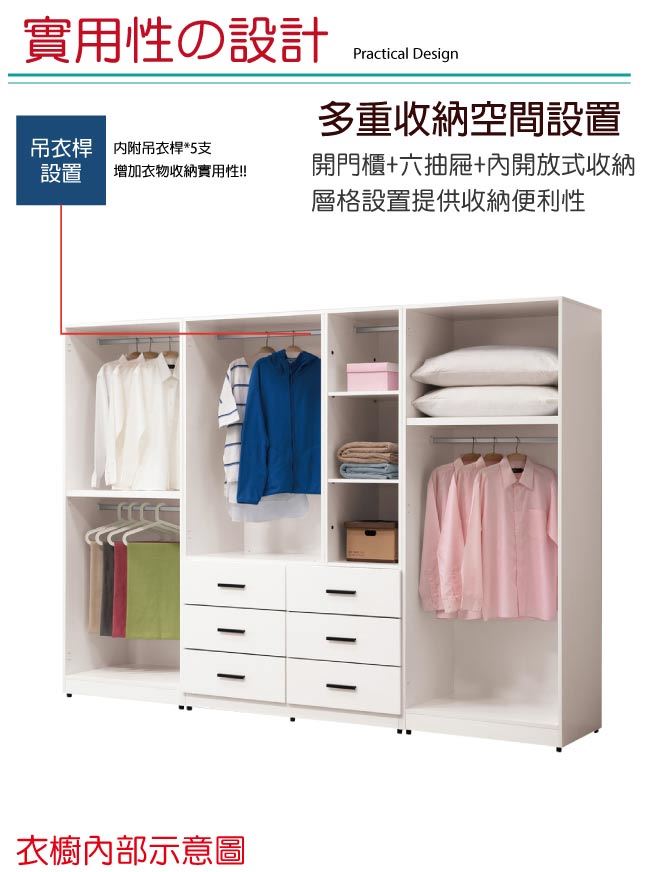 - 開門櫃+吊衣桿+六抽屜