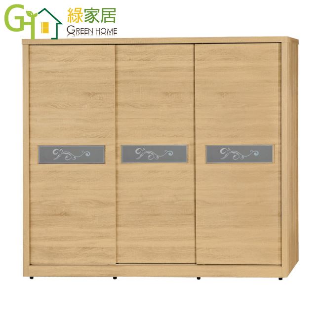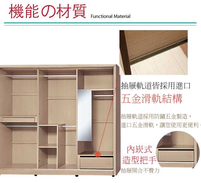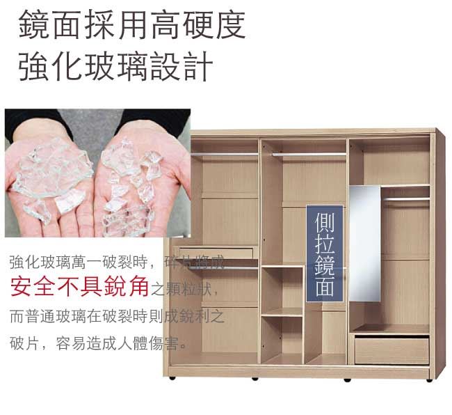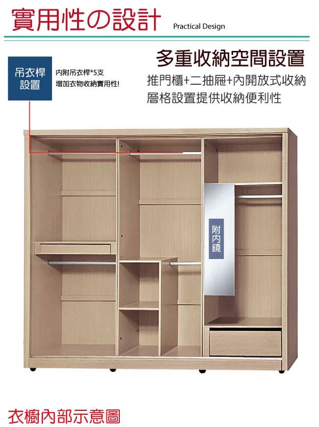 【綠家居】奧米 木紋7.4尺推門衣櫃/收納櫃(吊衣桿+二抽屜+側拉穿衣鏡面)