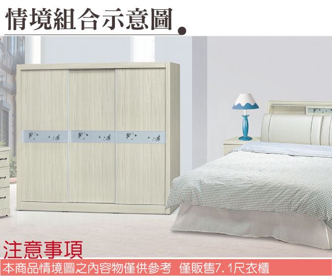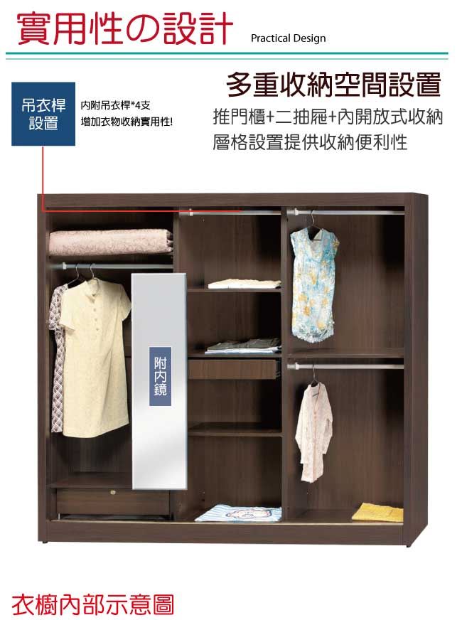 【綠家居】艾芬蘭 雪松7.1尺推門衣櫃/收納櫃(吊衣桿+二抽屜+側拉穿衣鏡面)