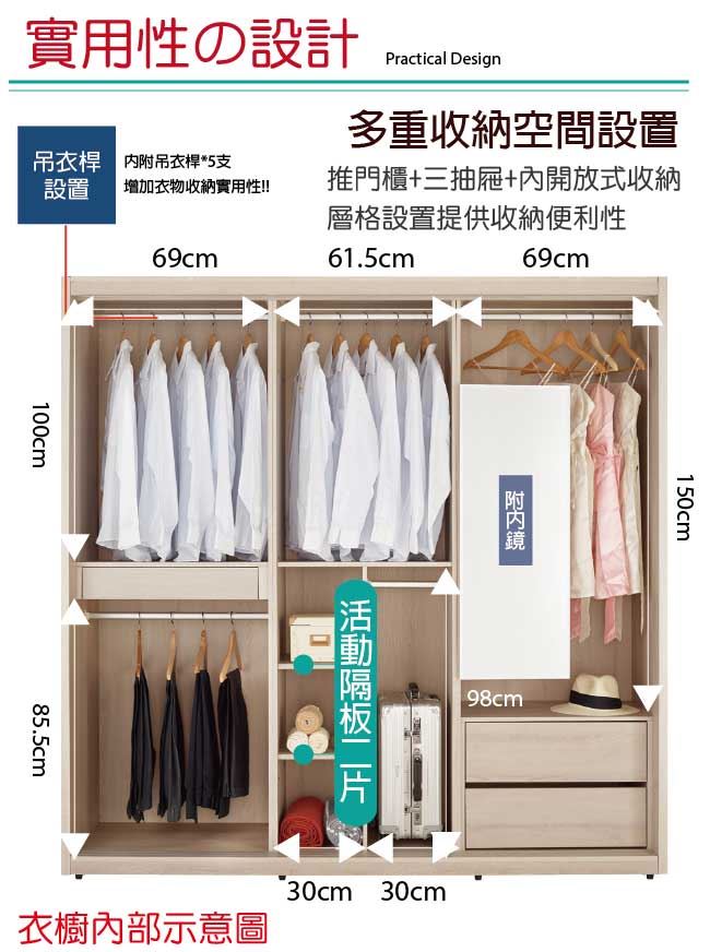 【綠家居】柏文 淺橡7尺推門衣櫃