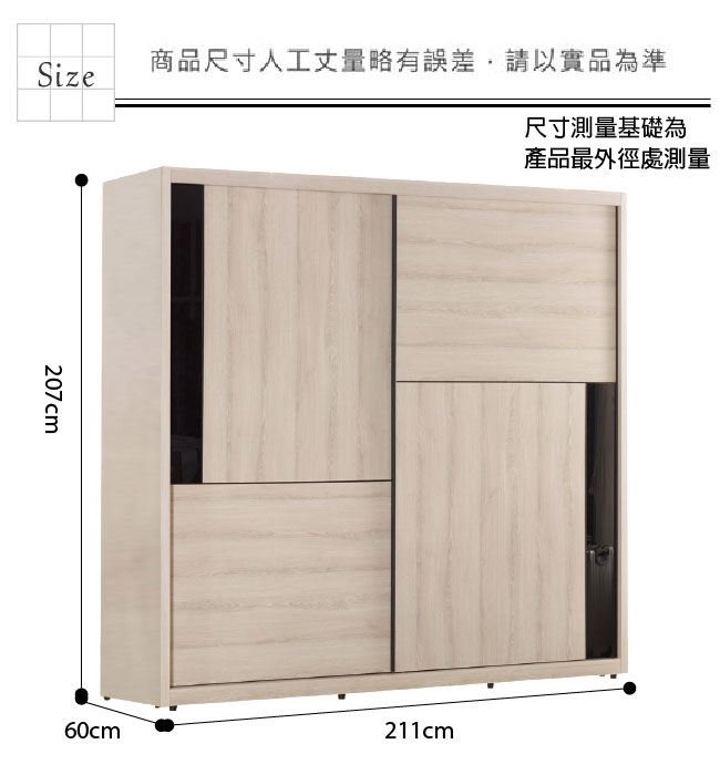 材質 | ◆產品名稱: 【綠家居】柏文 淺橡7尺推門衣櫃 產品尺寸: 尺寸:(寬)211x(深)60x(高)207/公分 ◆材質: 材質:防蛀木心板+防潮耐磨腳座 材質:五金滑軌結構+強化玻璃鏡面+5mm烤漆玻璃門片 塗漆:優利坦全包式耐磨噴漆處理