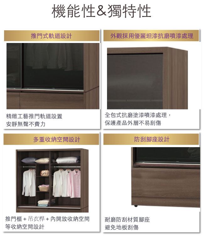 商 品 介 紹 | 【綠家居】雷迪 時尚6.1尺鏡面推門二抽衣櫃/收納櫃 木紋雙色系+現代簡約風格+安心材質製造,整體採用防蛀木心板+五金滑軌結構+防刮耐磨腳座+5mm強化門片黑玻等安心材質製造,外層採用防潮耐磨噴漆處理搭配採用推門櫃+吊衣桿+二抽屜+內開放式收納層格等收納空間設計,全由專人配送到家,專業安心服務,替你省下更多時間! 【商品特色】 木紋雙色系+現代簡約風格+安心材質製造,使用放心+搭配居家更便利 採用防蛀木心板+五金滑軌結構+防刮耐磨腳座+5mm強化門片黑玻等安心材質製造 採用推門櫃+吊衣桿+二抽屜+內開放式收納層格等收納空間設計 此商品不需要DIY組立,此商品為組立後之成品 品質保證、專業設計、貼心服務 全由專人配送到家,專業安心服務,替您省下更多時間 |