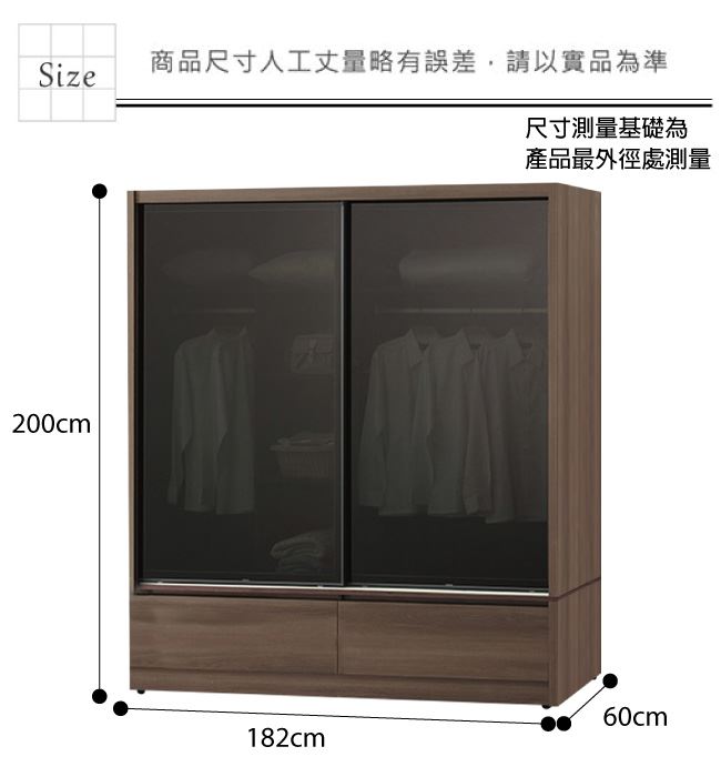 材質 | ◆產品名稱: 【綠家居】雷迪 時尚6.1尺鏡面推門二抽衣櫃/收納櫃 尺寸:(寬)182x(深)60x(高)200/公分 ◆材質: 材質:防蛀木心板+五金滑軌結構+防刮耐磨腳座+5mm強化門片黑玻 外層採用防潮耐磨噴漆處理