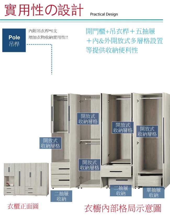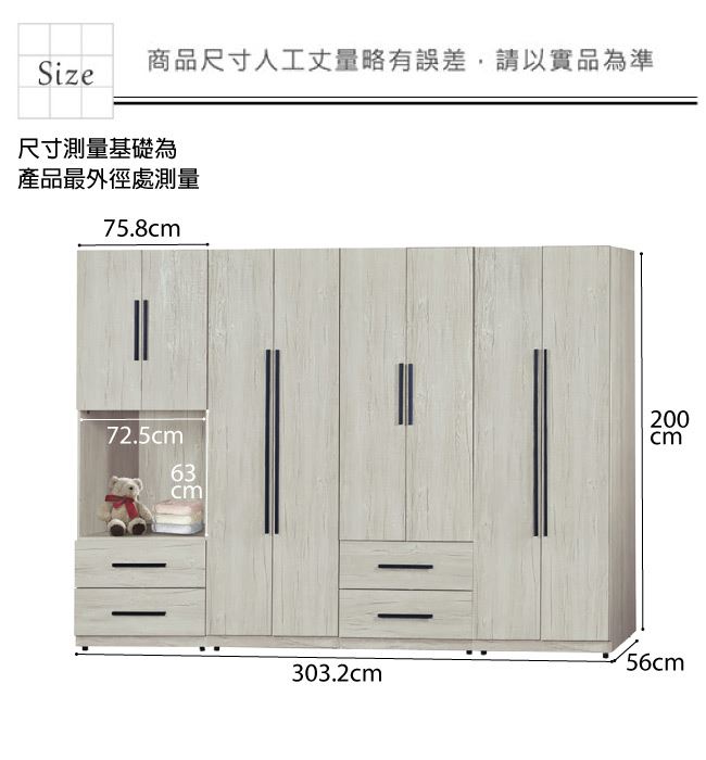 - ◆產品名稱:【綠家居】夏艾亞淺橡10.1尺八門四抽衣櫃組合