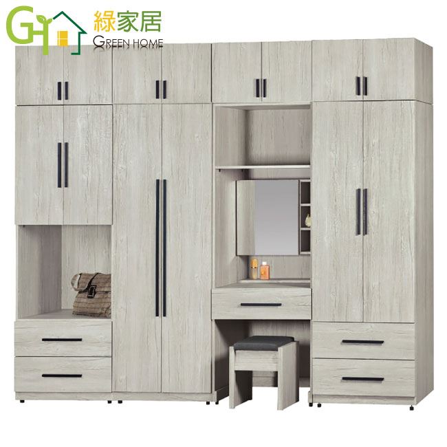 【綠家居】夏艾亞淺橡10.1尺多功能鏡台式加高衣櫃組合(含化妝椅)