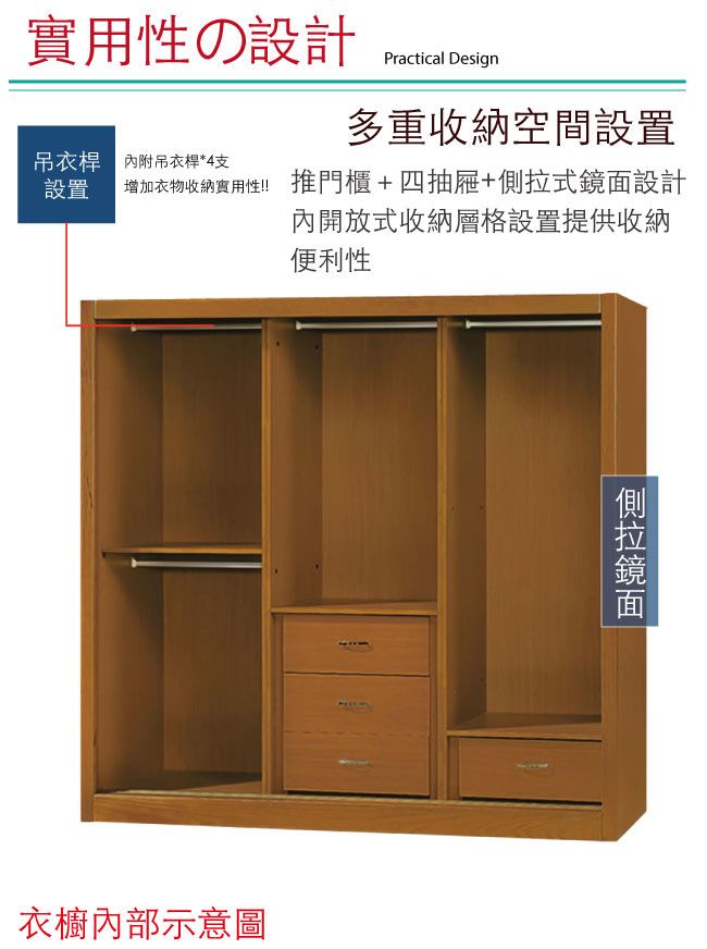 商 品 介 紹 | 【綠家居】梅利實木7.1尺推門衣櫃 柚木紋色系+現代簡約風格+安心材質製造,整體採用松木實木+防蛀木心板+防刮耐磨腳座+五金滑軌結構等安心材質製造,產品外層採用防潮耐磨噴漆處理搭配採用推門櫃+吊衣桿+四抽屜+內開放式收納等收納空間設計,全由專人配送到家,專業安心服務,替你省下更多時間! 【商品特色】 柚木紋色系+現代簡約風格+安心材質製造,使用放心+搭配居家更便利 採用松木實木+防蛀木心板+防刮耐磨腳座+五金滑軌結構等安心材質製造 產品外層採用防潮耐磨噴漆處理 搭配採用推門櫃+吊衣桿+四抽屜+內開放式收納等收納空間設計 此商品不需要DIY組立,此商品為組立後之成品 品質保證、專業設計、貼心服務 全由專人配送到家,專業安心服務,替您省下更多時間 |