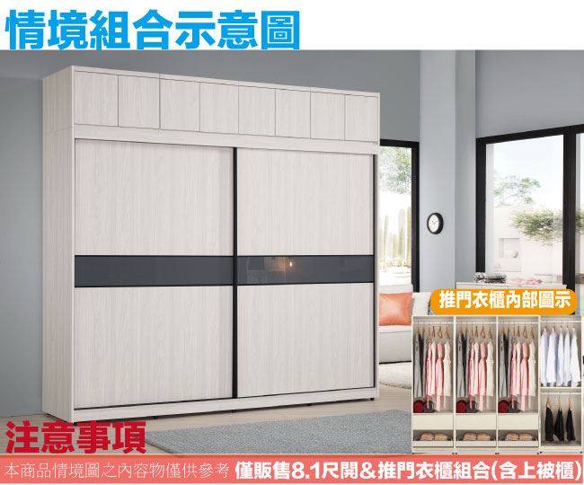 商 品 介 紹 | 【綠家居】摩克8.1尺三抽拉盤五吊桿推&開門加高衣櫃/收納櫃組合 淺橡木紋色系+現代簡約風格+安心材質製造,整體採用防蛀木心板+防潮耐磨腳座+五金滑軌結構+5mm強化灰漆強化灰漆玻璃門片飾板+防夾手緩衝門片五金等安心材質製造,產品外層採用防潮耐磨噴漆處理搭配採用下層推門衣櫃+上層開門被櫥櫃+吊衣桿+三抽屜+拉盤層架+內開放層格等收納空間設計,全由專人配送到家,專業安心服務,替你省下更多時間! 淺橡木紋色系+現代簡約風格+安心材質製造,使用放心+搭配居家更便利 採用防蛀木心板+防潮耐磨腳座+五金滑軌結構+5mm強化灰漆強化灰漆玻璃門片飾板+防夾手緩衝門片五金等安心材質製造 產品外層採用防潮耐磨噴漆處理 採用下層推門衣櫃+上層開門被櫥櫃+吊衣桿+三抽屜+拉盤層架+內開放層格等收納空間設計 此商品不需要DIY組立,此商品為組立後之成品 品質保證、專業設計、貼心服務 全由專人配送到家,專業安心服務,替您省下更多時間 |